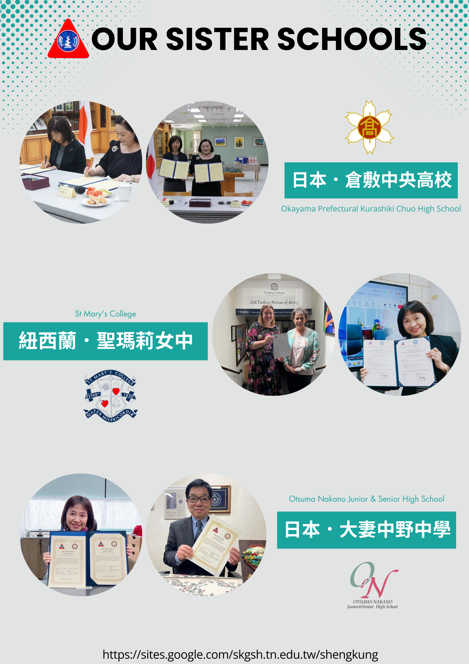 校名 岡山.岡山県立倉敷中央高等学校 Okayama Prefectural Kurashiki Chuo High School 奧克蘭.St.Mary's College 聖瑪莉女中 東京.大妻中野中学校・高等学校Otsuma Nakano Junior & Senior High School