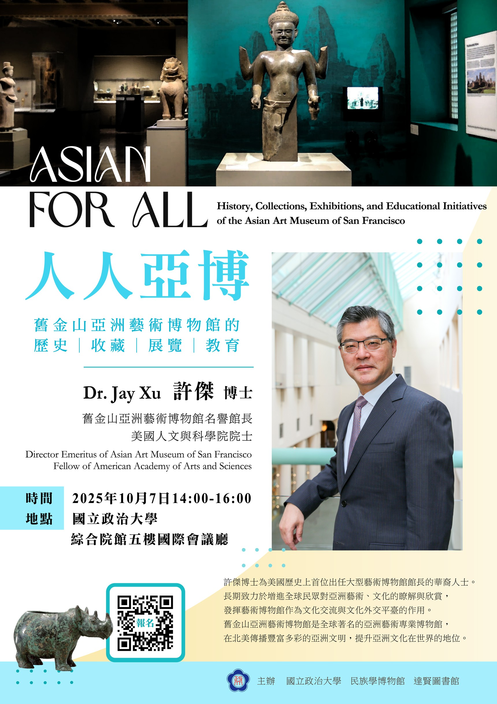 國立政治大學、民族學博物館、達賢圖書館共同舉辦「人 人亞博:舊金山亞洲藝術博物館的歷史、收藏、展覽和教 育」專題演講